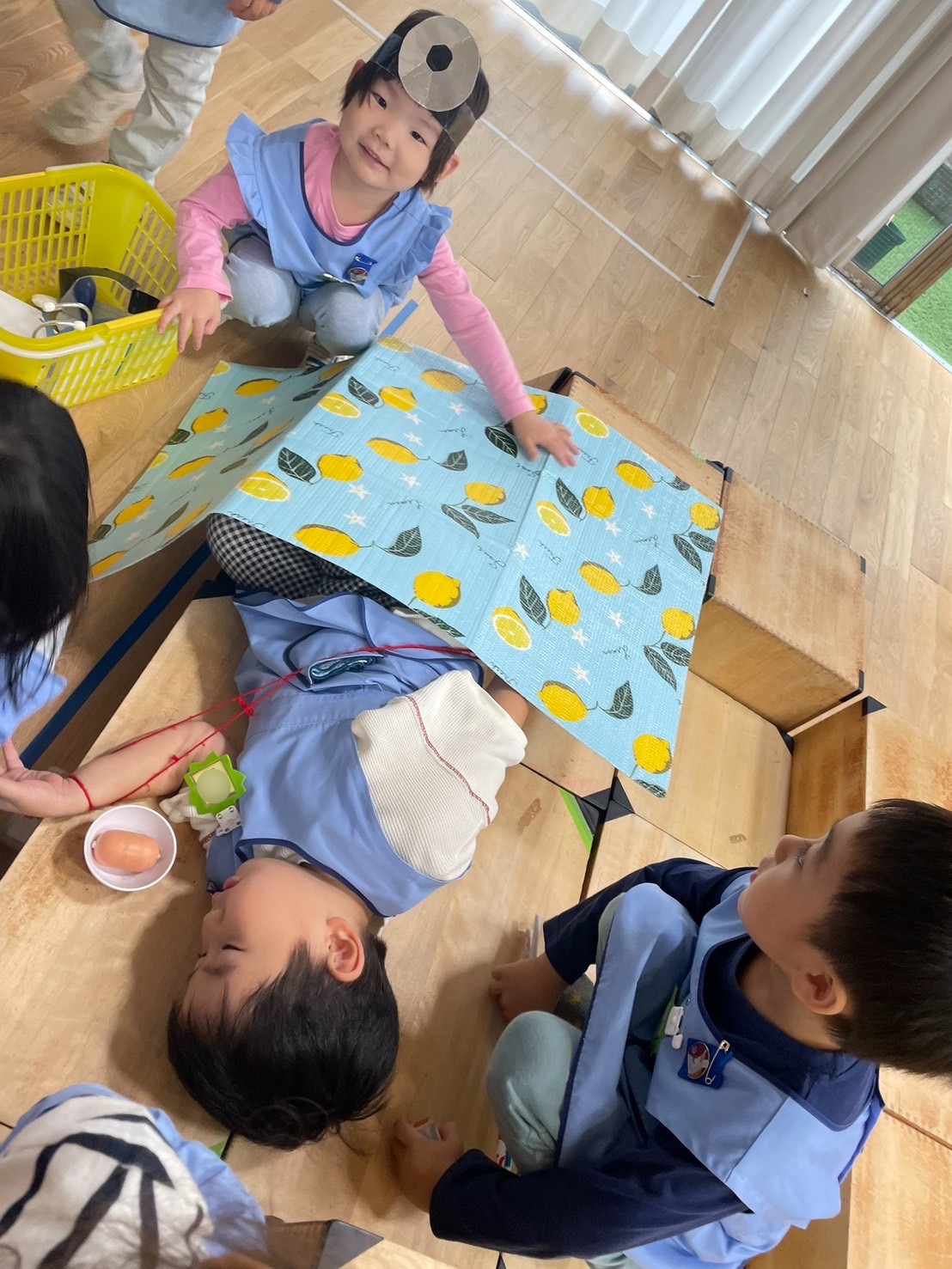 年中さん:病院ごっこ☆ 「早く良くなってくださいね!」