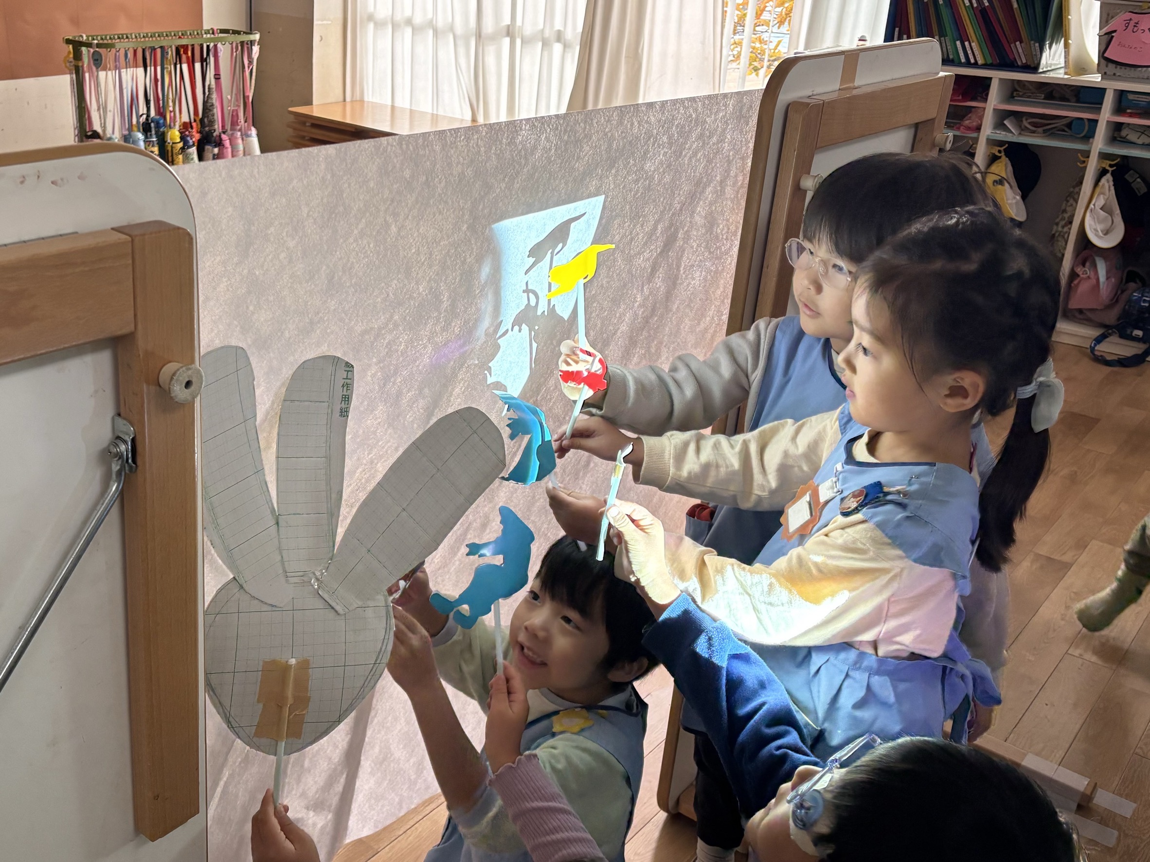 きょうだいクラス:秋のトンネル作りで、ビニールにお絵描き♪