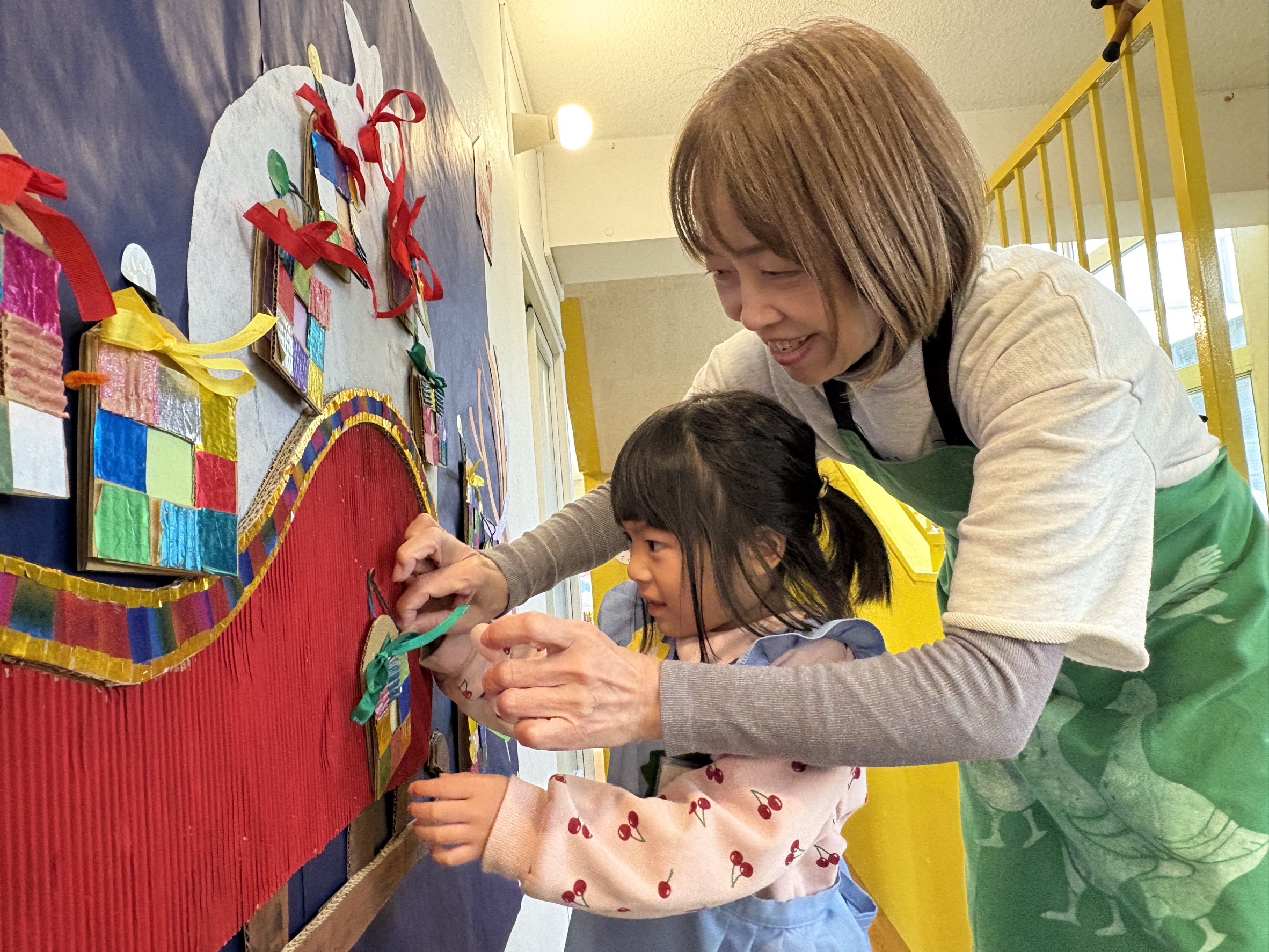 年中さん&年少さん:後ろのボタン、付けてあげるね♪